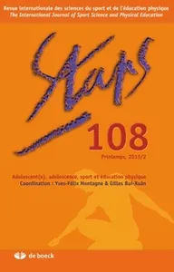 Adolescent, Adolescence, Sport, and Physical Education No 108, 2015/2 - pagesPages 5 to 6Let's Spot a ThemeBy Julien Fuchs, Christian VivierPages 7 to 19Changes in Adolescence, the Body, Physical Education, and SportBy Yves-Félix Montagne, Gilles Bui-XuânPages 21 to 30Giving Free Rein to Michel FizeBy Yves-Félix MontagnePages 31 to 36What a Living Body Latches On ToBy Philippe LacadéePages 37 to 48Official Texts on Physical Education, Sport, and Adolescence from 1925 to the Present DayBy Maël Le Paven, Emmanuel LefevrePages 49 to 59Body Capabilities in Adolescence: Emersion of the Living Body in Step AerobicsBy Aline Paintendre, Bernard AndrieuPages 61 to 71Is Adolescence a Critical Period for the Withdrawal of Physiological Protections during High-Intensity Exercise?By Sébastien Ratel, Vincent MartinPages 73 to 83SK8 as an Adolescent Symptom: A Psychoanalytical Perspective and Aspects of Physical Education and SportBy Yves-Félix MontagnePages 85 to 95Adolescents with Disabilities and Sport A Comparative Study with “Adolescents and Sport,” a Survey Conducted by INSEP (National Institute of Sport and Physical Education)By Gilles Bui-Xuân, Jacques MikulovicPages 97 to 107Sport and Gender Identity Construction. The Case of Oriental DisciplinesBy Alessandro PorrovecchioPages 111 to 114ReviewsBy Françoise Labridy