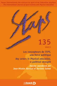 Key actors in Physical education, a political strength No 135, 2022/1 - pagesPages 5 to 12Individuals as supporting walls of physical education, from politics to policy areasBy Jean-Nicolas Renaud, Doriane GometPages 13 to 36Maurice Baquet: The man behind the mythBy Doriane Gomet, Thomas BauerPages 37 to 57Robert Mérand: His role in developing the theoretical bases of Maurice Baquet’s coursesBy Benoît Caritey, Jean-Jacques DupauxPages 59 to 84From the conception to the dissemination of an educational experiment: Auguste Listello’s conception based on his career path in France (1945–1973)By Yvon MorizurPages 85 to 106Polemic, objection, rhetoric: Three debates and their effects on the diffusion of Jean Le Boulch’s psychokinetic approachBy Blaise Desplechin-Lejeune, Pierre-Alban Lebecq, Tony FroissartPages 107 to 125Christian Chartier, a catalyst for the rise and fall of continuing professional development in the Bordeaux regionBy Éric ClaveriePages 129 to 130Lesage, Benoît (2021). Un corps à construire : tonus, posture, spatialité, temporalité. Foreword by Françoise Giromini. Toulouse: Erès, 440 pp.By Nancy MidolPages 131 to 136Soulé, Bastien (2021). Évaluer la recherche multidisciplinaire : un défi épistémologique escamoté en STAPS. Montpellier: AFRAPS, 116 pp.By Sylvain Ferez
