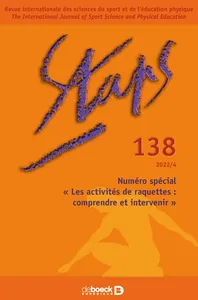 Special issue: “Racket sports: Understanding and intervening” No 138, 2022/4 - pagesPages 5 to 5In MemoriamBy Rémi Richard, Julien Fuchs, Jacques GleysePages 7 to 17Contribution to research on intervention in sport and PE: The example of racket sportsBy Oriane Petiot, Jérôme Visioli, Gilles KermarrecPages 21 to 39The coach-athlete relationship in table tennis: Practical implications and avenues for interventionBy Guillaume MartinentPages 41 to 61Increasing situational interest and physical activity by adapting game formats to students’ conative prevalences: The example of badminton in PEBy Olivier Dieu, Cédric RourePages 63 to 77Didactic variables in badminton: A literature reviewBy Paul Klonowski, Mathilde Musard, Denis LoizonPages 79 to 98Racket sports: Story of their historiesBy Thomas Bauer, Doriane Gomet, Serge VaucellePages 99 to 119An (in)complete democratization? First elements of a sociology of French “women’s” tennisBy Marine FontainePages 123 to 130Biomechanics in the service of intervention in sport? Interview with Caroline MartinBy Jérôme Visioli, Oriane PetiotPages 133 to 135Olivier Chovaux, Siffler n’est pas jouer ? Une histoire des arbitres de football, Neuilly-sur-Seine, Atlande, coll. “Penser le sport”, 2021, 135 pages. Foreword by Georges VigarelloBy Laurent GrünPages 137 to 139Bernard Andrieu, Histoire du sport-santé. Du naturisme à la médecine du bien-être, Paris, L’Harmattan, coll. “Émersions”, 2021, 244 pages. Foreword by Jean-Paul CallèdeBy Gilles LecocqPages 141 to 144William Gasparini, Sandrine Knobé (eds.), Le sport-santé. De l’action publique aux acteurs sociaux, Strasbourg, Presses universitaires de Strasbourg, coll. “Sport en société”, 2021, 342 pages.By Élise Decorte
