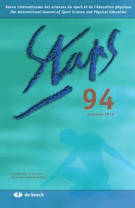 Volume 32 - Automne 2011 n°94, 2011/4 - pagesPages 5 à 6ÉditorialPar Jacques GleysePages 7 à 23Is time a problem? The work-life-leisure balance and its impact on physical activities: a case study in DenmarkPar Gertrud PfisterPages 25 à 38L'après-carrière des footballeurs professionnels en Afrique du SudPar Jérôme Berthoud, Raffaele PoliPages 39 à 61Une approche singulière de l'évaluation des niveaux d'intégration sociale des femmes arabo-musulmanes issues de l'immigration maghrébine en France : corps, sport et analyse conativePar Mohamed Khmailia, Jacques Mikulovic, Gilles Bui-XuânPages 63 à 70Corporal technique in the game of capoeiraPar João Carlos Neves de Souza e Nunes DiasPages 71 à 83Concevoir du matériel sportif à partir d'une approche centrée sur l'activité : une alternative en ergonomie du sportPar Germain Poizat, Yvon Haradji, Ludovic SeifertPages 85 à 102Des activités athlétiques a l'école entre santé et performancePar Anne Roger, Pierre BavazzanoPages 103 à 119Les activités de combat au sein de l'éducation physique en France depuis le XIXe siècle : entre pertinences éducatives et résistances scolairesPar Haimo Groenen, Cécile Ottogalli-MazzacavalloPages 121a à 122aCollot E. et Hell B., Soigner les âmes : l’invisible dans la psychothérapie et la cure chamanique, Paris, Dunod, 2011Pages 121b à 125bChristophe Mauny, Être handballeur professionnel : les dimensions cachées d’une identité plurielle, Bruxelles-Fernelmont, Éditions Modulaires Européennes & InterCommunications sprl, 2009, 24 e