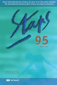 Volume 33 - Hiver 2012 n°95, 2012/1 - pagesPages 5 à 6Éditorial 95Par Jacques GleysePages 7 à 21La Légende du football : Georges Haldas, passeur d'émotionsPar Thomas Bauer, Alexis FredriksenPages 23 à 41Pratiques de régulation didactique en Éducation Physique et Sportive et place des savoirs techniques : illustration à travers une étude de casPar Jean-Marie Boudard, Jean-François RobinPages 43 à 53Stratégies de croissance de l'offre et différences statutaires : le cas des bases nautiques de la Côte d'OpalePar Lorgnier NicolasPages 55 à 65Bodies unbuilt in the dance-theater of Pina BauschPar Marcilio de Souza VieiraPages 67 à 73Évaluation de l'activité physique chez l'enfant en surcharge pondérale après un programme de réadaptation : le questionnaire contre l'accélérométriePar Jérémy Vanhelst, Laurent Béghin, Gilles Bui-Xuân, Jacques MikulovicPages 75 à 90Création de l'ENEP à Paris en 1933 et formation des enseignants d'éducation physique sous la IIIe RépubliquePar Gérard Fouquet, Jean-Michel PeterPages 91a à 93aLa invención del « homo gymnasticus ». Fragmentos históricos sobre la educación de los cuerpos en movimiento en Occidente. Sous la direction de Pablo Scharagrodsky. Buenos Aires, Prometeo, 2011, 527 p.Pages 94b à 95bÉric Dugas. L’homme systémique. Pour comprendre les pratiquants de jeux sportifs. Préface d’Éric Debarbieux. Nancy, Presses universitaires de Nancy, 2011, 297 p.Pages 96c à 97cNicolas Réhany, Les gars du coin : enquête sur une jeunesse rurale. Paris, La Découverte/poche, 2010. Par Williams Nuytens, Université d’Artois, Laboratoire Sherpas