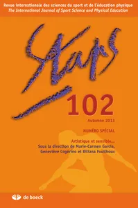 Volume 34 - Automne 2013 Artistique et sensible (1/2)n° 102, 2013/4 - pagesPages 5 à 6ÉditorialPar Christian VivierPages 7 à 13Regards sur le sensible...Par Marie-Carmen Garcia, Geneviève Cogérino, Biliana FouilhouxPages 17 à 30À la source éducative de l'artPar Alain KerlanPages 31 à 46L'apprentissage de la danse en collège ZEP à l'épreuve du genrePar Carine GuérandelPages 47 à 60Le goût du cirque chez les enseignants d'EPSPar Marie-Carmen GarciaPages 61 à 74Les consignes comme embrayeurs d'action et de perception en cours de yoga/ danse contemporainePar Anne CazemajouPages 75 à 88Empathie kinesthésique, danse-contact-improvisation et danse-théâtrePar Christine LeroyPages 89 à 102Construire l'état de danse à travers l'empathie kinesthésique. L'exemple de l'apprentissage du tango argentinPar Marito Olsson-ForsbergPages 103 à 114Sensations et hybridations en dansePar Biliana FouilhouxPages 117a à 122aDenise Barriolade, Laurent Besse, Arnaud Loustalot (Eds.), Maurice Herzog. Un Septennat Pour Une Politique Jeunesse Et Sports (27 Septembre 1958 – 8 Janvier 1966), Paris, La Documentation Française, 2013, 284 p.Par Olivier ChovauxPages 117b à 122bJean-Yves Guillain, Histoire Du Golf En France, Paris, L’Harmattan, 2013. Volume 1 : Le Temps Des Pionniers, 267 P. Volume 2 : Le Temps De L’Institutionnalisation, 271 p.Par Jean-Michel PeterPages 117c à 122cBertrand Pulman, Rouge Est La Terre : Dans Les Coulisses De Roland-Garros, Paris, Calmann-Lévy, 2013, 299 p.Par Jean-Michel PeterPages 125 à 134Vers le rapport au corps dans les publicités : analyse quantitative (1985-2003)Par Claire Maugère