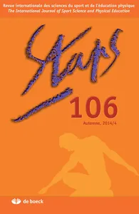 Volume 35 - Automne 2014 n° 106, 2014/4 - pagesPages 5 à 6Éditorial. Un, pressions ! Deux, impressions ! Trois, soleil d’impressions !Par Christian VivierPages 7 à 19When Sport and Everyday Life Citizenships Are Connected...Par Thierry Long, Nathalie PantaléonPages 21 à 35La reconstruction de la Fédération Internationale de Football Association (FIFA) après la Seconde Guerre mondiale (1944-1950). Jalons pour une histoire des relations internationales sportivesPar Grégory QuinPages 37 à 53Attitudes des enseignants d’Éducation Physique envers l’inclusion d’un élève en situation de handicap. Une revue systématique de la littérature (1975-2015)Par Maxime Tant, Éric WatelainPages 55 à 70Participation des jeunes ayant une limitation fonctionnelle à des activités physiques et sportives. Visions et préoccupations des intervenants en milieu scolaire au QuébecPar Romain Roult, Hélène Carbonneau, Marie-Michèle Duquette, Émilie Belley-RangerPages 71 à 86La France et les premières heures du pentathlon moderne olympiquePar Sandra HeckPages 87 à 96Évaluation de la condition physique des adolescents dans la région Île-de-France : comparaison avec les normes européennesPar Jérémy Vanhelst, Grégory Czaplicki, Laurence Kern, Jacques MikulovicPages 97 à 99Quelques auteur(e)s ayant publié dans la rubrique « Chantier en question » s’expriment suite au drame du 7 janvier 2015 qui s’est déroulé dans les locaux de Charlie HebdoPages 100 à 101Les archives de l’humour : de la jubilation au dégoûtPar Sébastien Laffage-CosnierPages 102 à 102PEF pleure ses copainsPar Jean-Marc LemonnierPages 103 à 104Charlie Abdo, ou lorsque le dessin a du ventrePar Jean-Nicolas RenaudPages 105 à 106Sous un déluge d’images, de couleurs et de noirs : les reflets des lumières du monde socialPar Audrey Tuaillon DemésyPages 107a à 112aP.-A. Lebecq, Y. Morales, J. Saint-Martin, Y. Travaillot, L’exercice et la santé : identité de la gymnastique volontaire en France depuis 1954. Paris, Le Manuscrit, 2013, 337 p.Par Gérard FouquetPages 107b à 113bCarine Plancke, Flux, rencontres et émergences affectives. Pratiques chantées et dansées chez les Punu du Congo-Brazzaville. Toulouse, Presses universitaires du Mirail, coll. « Les Anthropologiques », 2014, 418 p., 25 €Par Nancy Midol