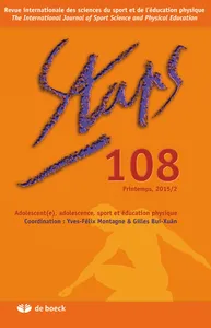 Volume 36 - Printemps 2015 Adolescent(e), adolescence, sport et éducation physiquen° 108, 2015/2 - pagesPages 5 à 6Thématisons !Par Julien Fuchs, Christian VivierPages 7 à 19La transhumance de l’adolescence, le corps, l’EPS et le sport...Par Yves-Félix Montagne, Gilles Bui-XuânPages 21 à 30Carte blanche à Michel FizePar Yves-Félix MontagnePages 31 à 36À quoi s’enchaîne le corps vivantPar Philippe LacadéePages 37 à 48Que disent les textes officiels de l’éducation physique et sportive lorsqu’ils parlent de l’adolescent ?Par Maël Le Paven, Emmanuel LefevrePages 49 à 59Le corps capacitaire des adolescent(e)s : une émersion du vivant dans leur perception du stepPar Aline Paintendre, Bernard AndrieuPages 61 à 71L’adolescence est-elle une période de levée des protections physiologiques au cours de l’exercice musculaire intense ?Par Sébastien Ratel, Vincent MartinPages 73 à 83Le SK-8, comme symptôme d’un adolescent : regard psychanalytique et perspectives en EPSPar Yves-Félix MontagnePages 85 à 95Les adolescents handicapés et le sport Étude comparée avec « Les adolescents et le sport », enquête menée par l’INSEPPar Gilles Bui-Xuân, Jacques MikulovicPages 97 à 107Sport and Gender Identity Construction. The Case of Oriental DisciplinesPar Alessandro PorrovecchioPages 111 à 114RecensionsPar Françoise Labridy